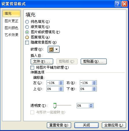 插入(ru)成功后,在改幻燈片(pian)編輯區里就會(hui)出(chu)(chu)現一個類似(si)于“圖(tu)片(pian)”的對象(xiang)框(kuang),這(zhe)就是剛剛插入(ru)的演示文稿(gao),選(xuan)中該對象(xiang)框(kuang),可以看到(dao)幻燈片(pian)編輯區內(nei)有8個黑色的控制焦點,可以拖動它,調節(jie)其(qi)大小,再把該對象(xiang)框(kuang)拖動到(dao)合適位置。選(xuan)中后右鍵(jian)單(dan)擊(ji),在彈出(chu)(chu)菜(cai)單(dan)中選(xuan)擇“設置背景格式”,然后在“填充(chong)”選(xuan)項中選(xuan)擇“圖(tu)片(pian)或(huo)紋理(li)填充(chong)”(圖(tu)2)。