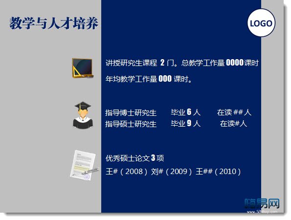 花花綠綠的PPT絕對是他們無比憎恨的類型,但你也不要義無反顧的使用過分簡單的單色。一般說來,藍色嚴謹,灰色優雅,而將顏色加深后氣質會更穩重一些,因此,不妨以深藍色為主色,灰色為輔色構筑配色方案。