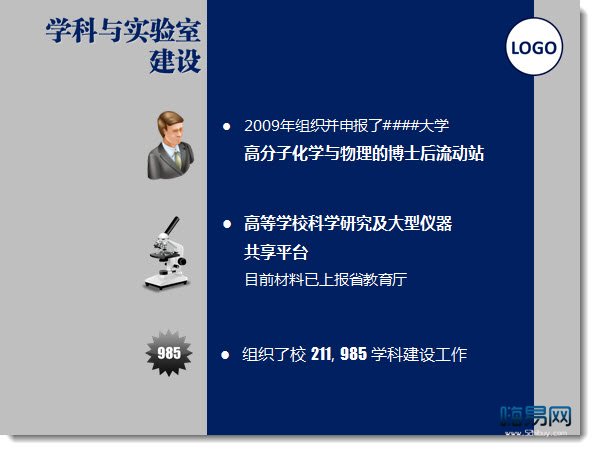 雖然他們口才很好,但我們交付PPT的時候,他們可能已經沒有剩下多少熟悉PPT的時間。這時候,盡量保留文字是明智之舉。但保留文字也意味著我們不太可能將文字圖表化(而且這樣制作會很費事),因此需要利用新穎的版式彌補大量文字的不足,但過于創新、新穎的版式又與穩重的風格要求背道而馳,而采用如下縱向貫通的版式是比較合理的選擇。