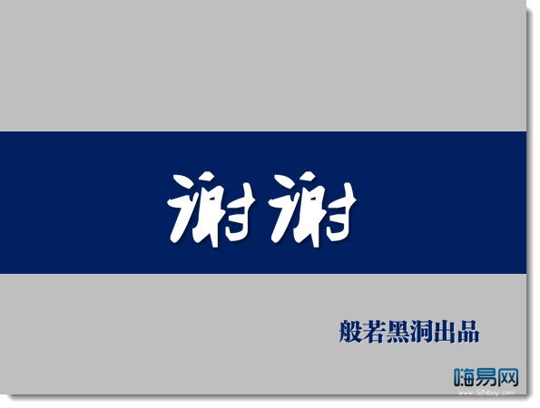 尾頁簡單的寫上“謝謝”就好。現在越來越多的PPT尾頁都會看到“感謝聆聽”的字樣,制作者可能覺得這四個字比單純的“謝謝”新穎一些。但據百度百科,“聆聽”是指“集中精力認真地聽。指虔誠而認真地聽取,帶有尊敬的色彩,因此一般表示下級聽取上級的意見、報告等。”現在,什么情況下可以使用這四個字聰明的你應該懂的。最后,本頁中“謝謝”兩個字使用了比較大氣的葉根友行書簡體。