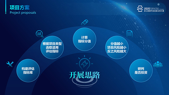 — 深藍色的背景配合亮藍色的背景,同時穿插光感漸變的元素,抽象模擬光電,表現出炫酷科技感,契合了PPT的大數據、電網主題