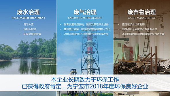 — 使用淺藍色與白色搭配,穿插的與寧波廠區建筑的顏色金色作為點綴,能夠非常直觀地起到視覺上的強調作用,而且簡練大氣。PPT提煉了語言,優化了圖片及信息圖,使得信息傳達變得精煉簡潔、一目了然
