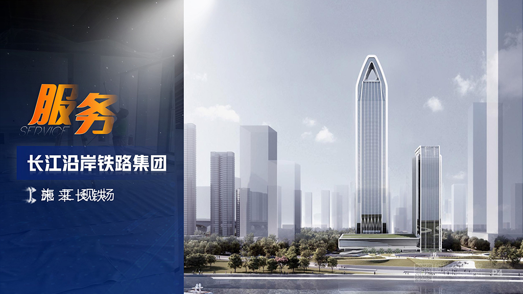 設計采用藍黃搭配,配圖上采用施工現場圖片為主,場景化圖片為輔突出企業服務,運用文字顏色的對比和大小對比來突出核心內容,根據企業屬性,