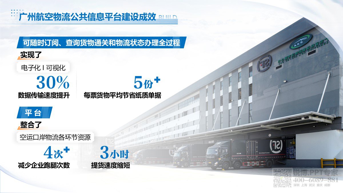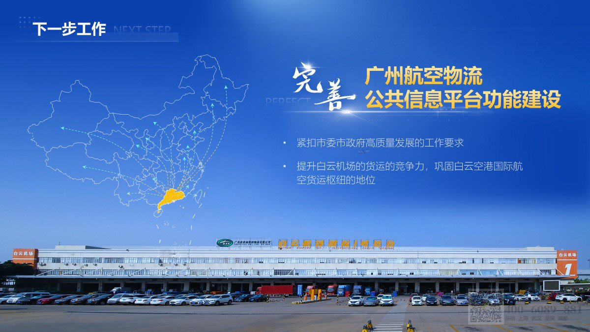 設計風格現代,融入廣州地標與航空元素,直觀展現廣州航空物流公共信息平臺建設情況,增強地域與行業屬性。