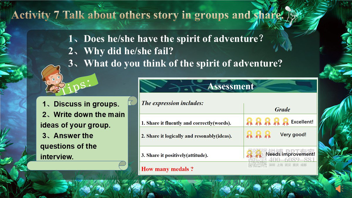 背景元素豐富,有茂密的樹葉、藤蔓、花朵等叢林景象,增強了視覺吸引力與主題契合度。