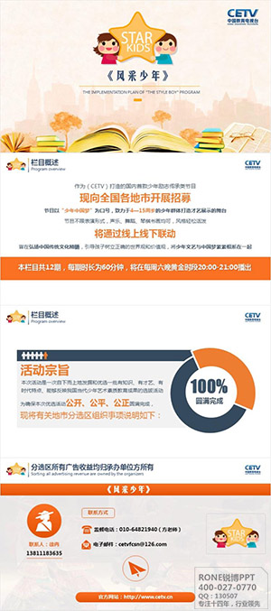 風采(cai)少年,項(xiang)目是文化(hua)藝術與公益匯(hui)聚的綜合案例。我們(men)通過文化(hua)藝術節這個特色項(xiang)目的平臺(tai),以圖在可見的未來達成更(geng)多的合作。本(ben)項(xiang)目的需(xu)求核(he)心(xin)在于主動將(jiang)風采(cai)少年的各方優(you)勢向投資者呈現(xian),銳(rui)博(bo)準確的剖(pou)析讓整個演示設計項(xiang)目都順利進行并完成。