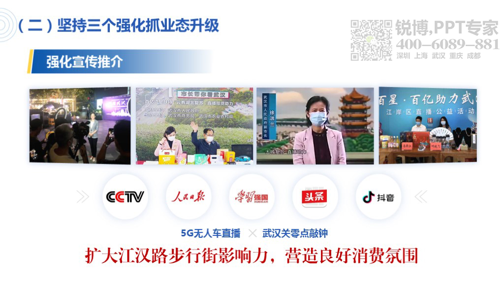 ——說明:整個ppt以圖片和藍色為底,藍色代表這愛,寬容,有著安詳和潔凈的意思,以白色相搭配體現了明朗,潔凈。加上是被疫情所影響的城市,所以會深入人心。