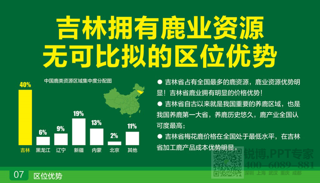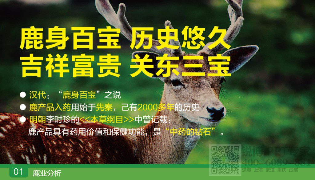 — 說明:梅花鹿產業項目企劃書中有大量的文字,經過信息的提取和融合后讓內容得到更好的展現。圖片的搭配使用讓畫面更加舒適,避免用戶因大量文字產生視覺疲勞,大量的配圖使內容看更加豐富生動。