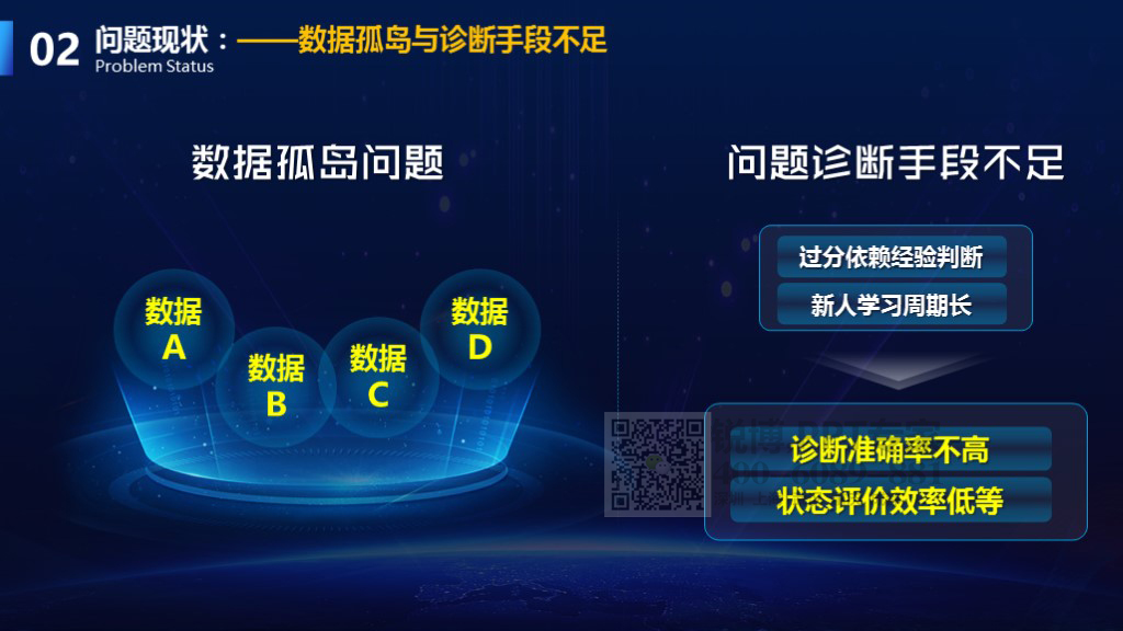 — 說明:運用深藍色的底色搭配漸變的圖形元素打造了科技感,深藍色的文字和黃色的關鍵性詞匯拉大字號差距增強對比,讓畫面更具層次感。圖表化的設計手法卻讓畫面簡潔而不簡單。