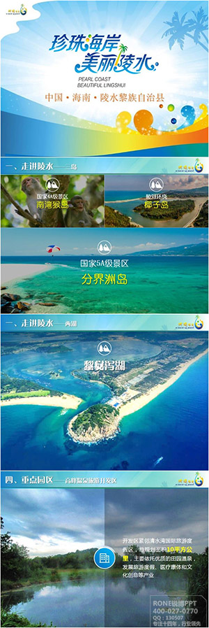 陵(ling)(ling)(ling)水(shui)(shui)黎族(zu)(zu)自治縣位于(yu)海(hai)南(nan)島東南(nan)部,有著優越的自然條件,豐富的資(zi)源,深遠的歷史文(wen)(wen)化。得天獨厚(hou)的旅(lv)(lv)(lv)游(you)資(zi)源,兼(jian)具了(le)陽光、海(hai)水(shui)(shui)、沙灘、雨林、空氣等五大自然元素,并集藍色(se)(se)濱海(hai)旅(lv)(lv)(lv)游(you)、綠色(se)(se)生態旅(lv)(lv)(lv)游(you)及(ji)紅色(se)(se)歷史、民(min)族(zu)(zu)風情、民(min)俗(su)特(te)(te)色(se)(se)等人文(wen)(wen)旅(lv)(lv)(lv)游(you)于(yu)一體。宜人的氣候、秀(xiu)美(mei)(mei)的海(hai)岸線和獨特(te)(te)的民(min)族(zu)(zu)文(wen)(wen)化使得陵(ling)(ling)(ling)水(shui)(shui)素有“珍珠海(hai)岸”美(mei)(mei)譽。銳博設計采(cai)用(yong)圖文(wen)(wen)并茂的方式,更好的體現出陵(ling)(ling)(ling)水(shui)(shui)得天獨厚(hou)的旅(lv)(lv)(lv)游(you)資(zi)源,把陵(ling)(ling)(ling)水(shui)(shui)這個水(shui)(shui)美(mei)(mei)山美(mei)(mei)的特(te)(te)點(dian)展現的淋淋盡致,讓觀看者(zhe)一看就有想去旅(lv)(lv)(lv)游(you)的沖動。
