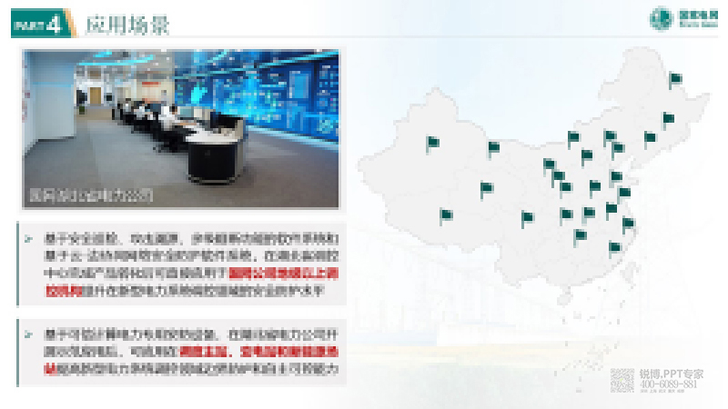 利用電網標志的顏色為整體ppt的主色調,畫面明亮干凈,邏輯清晰,底圖烘托氣氛,
