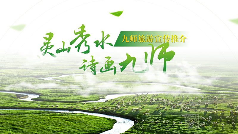 通過滿幅風景圖搭配藝術字體設計和圍繞信息內容本身而呈現的排版方式,展現了九師靈山秀水,如詩如畫的風貌特點,整體設計清新生動,引人入勝