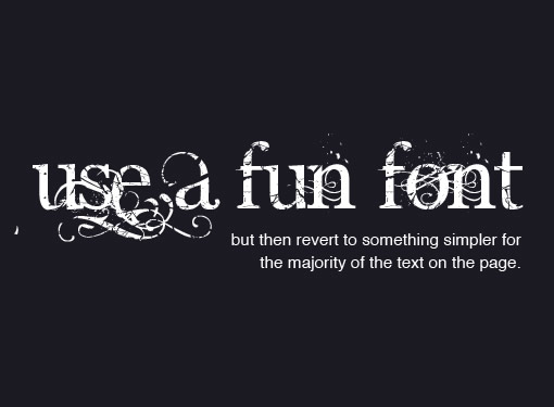 現 在,請不要(yao)愁眉苦(ku)臉,我(wo)要(yao)說的(de)(de)是你(ni)不必100%地回(hui)避那些很酷的(de)(de)字體。有趣的(de)(de)東西總有機會發(fa)揮用(yong)武之(zhi)地的(de)(de),只需(xu)了解你(ni)應當明智而有彈性地運用(yong)這些字體即可。