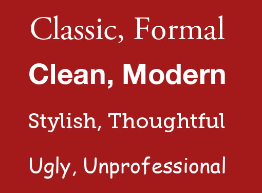 作為排版術如何僅憑其自身設計來進行溝通的例子,看看下面的字體。老式的serif字體往往給人以正規和專業的感覺,而sans-serif字體則既整潔又有現代感。