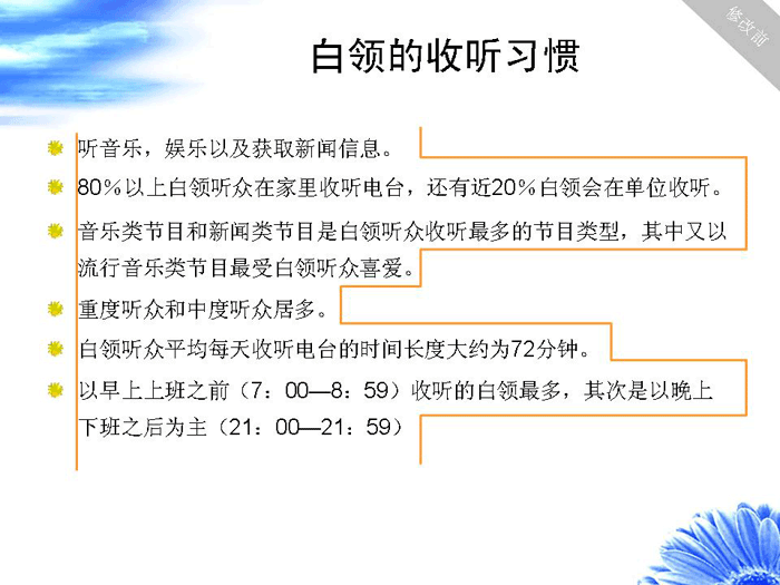 上面這(zhe)張ppt有(you)兩個毛病。一是字數太多,抓不住重點;二是右邊沒有(you)對齊,使得讀者的視(shi)線只能一行(xing)行(xing)地從行(xing)首到行(xing)尾移動(dong),不能直上直下。