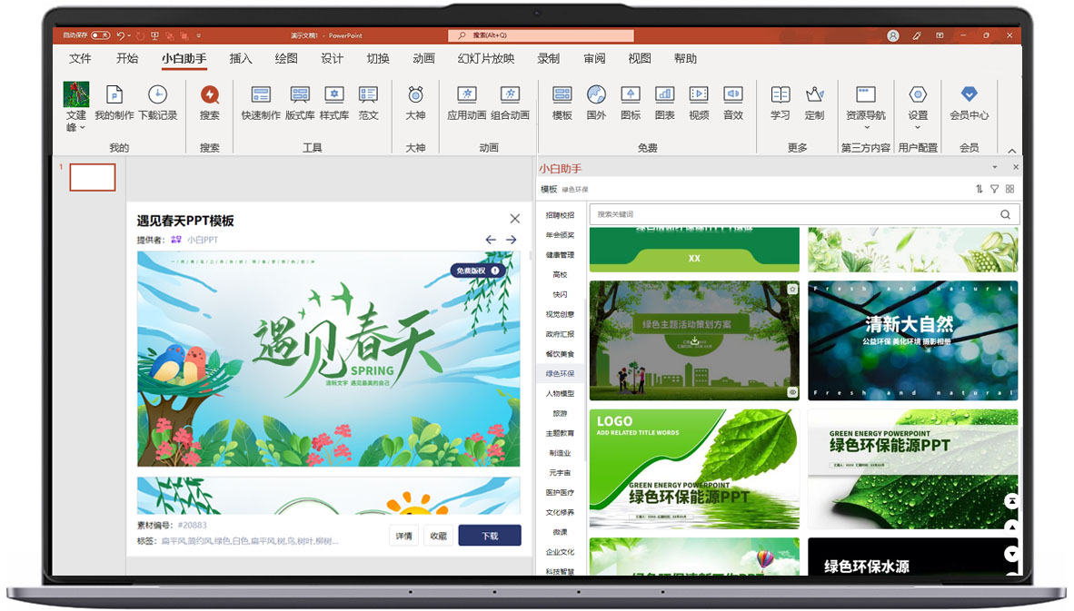 3、一鍵(jian)免費(fei)插入:萬種高端(duan)模板