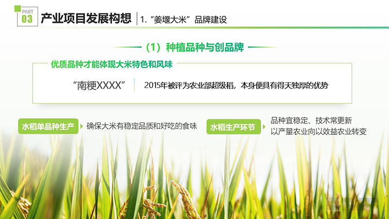 使用秋收的圖片作為背景符合主題的背景 同時黃色的稻谷與藍白色的天空整體畫面上