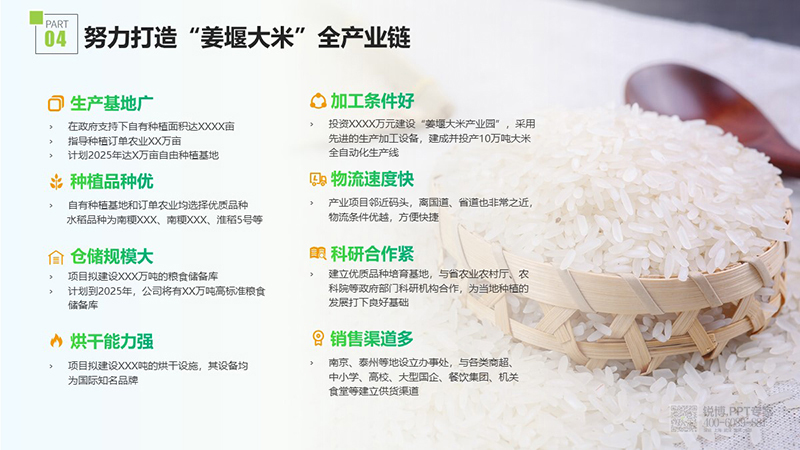 ,PPT中主要的關鍵字均為綠色漸變色,暗示產品的綠色