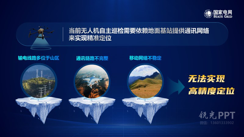科技技術內容采用了深藍科技感風格,文字采用淺藍和重點黃色形成對比加強沖擊力,