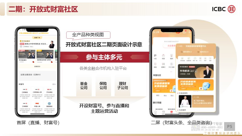 在內頁小設計方面,淡黃色的的基調配上小面積的紅色點綴,更加契合工行的logo,同時讓整個畫面更加和諧